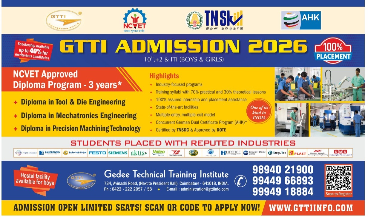 To allow competent engineers of tomorrow to discover the hidden treasures in Tool and Die Engineering and its broader applications, GDNC started Gedee Technical Training Institute (GTTI) in July 2002. GTTI offers various job oriented NCVT courses such as Tool & Die maker ( Dies & moulds) ,Technician Mechatronics, Machinist ,Welder ( welding& inspection), Welder ( GMAW & GTAW). GTTI is the one and only institute in India which offers German certified AHK courses such as Tool & Die Mechanic and Mechatronics Technician. GTTI also offers other courses such as Diploma in Tool & Die Engineering, Diploma in Mechatronics , Diploma in Precision Machining Technology and Post Diploma in Tool Design (PDTD), Post Diploma in Mechatronics and Automation Technology based on German and Swiss educational standards.